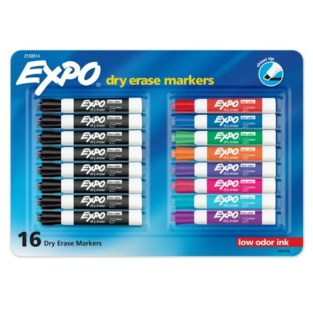 EXPO Low Odor Dry Erase Markers, Chisel Tip, Assorted Colors, 16 Count