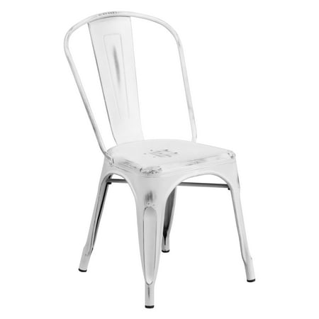 Flash Furniture Commercial Grade Distressed White Metal Indoor-Outdoor Stackable Chair