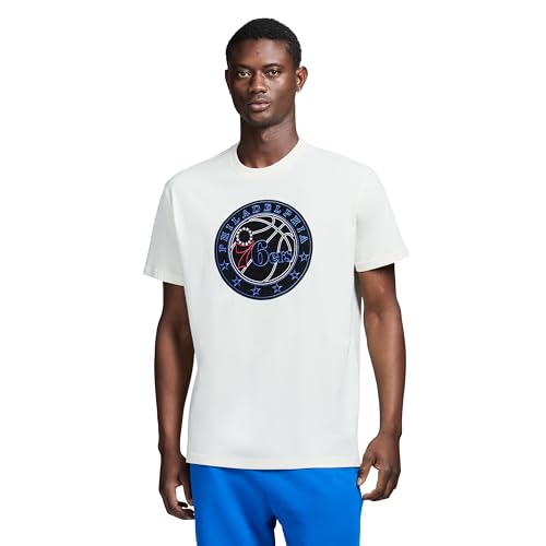 Game 7 x NBA Officially Licensed Men's Short Sleeve Oversized Heavyweight Crew Neck Cotton Patch T-Shirt, Philadelphia 76'ers, S, Off-White