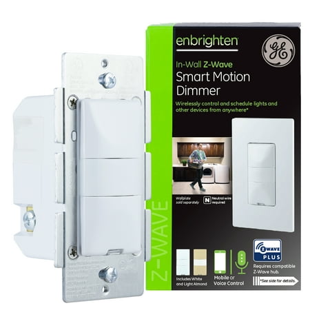 GE Enbrighten Z-Wave Plus Smart Motion Light Dimmer, Z-Wave Hub Required, 26933, White and Light Almond
