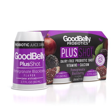Goodbelly Plus Shot Dairy-Free Pomegranate Blackberry Probiotic Juice Drink, 10.8 Oz., 4 Count
