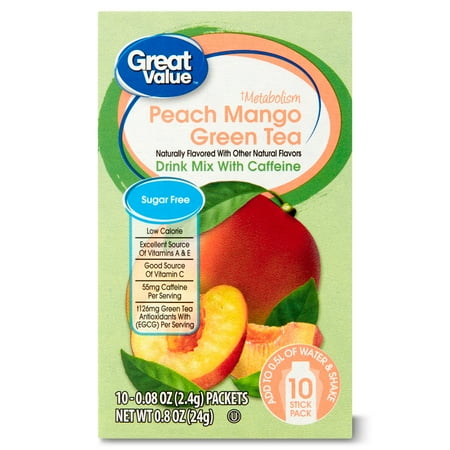 Great Value Sugar-Free Peach Mango Green Tea Powdered Drink Mix, 0.08 oz, 10 Packets