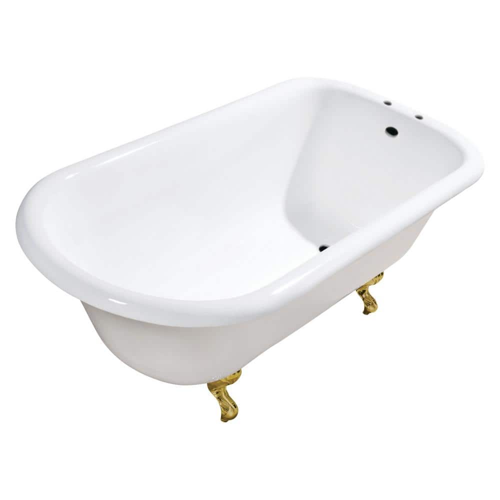 Kingston Brass Aqua Eden 54 in. x 30 in. Cast Iron Clawfoot Soaking Bathtub in White/Brushed Brass with 7 in. Faucet Drillings