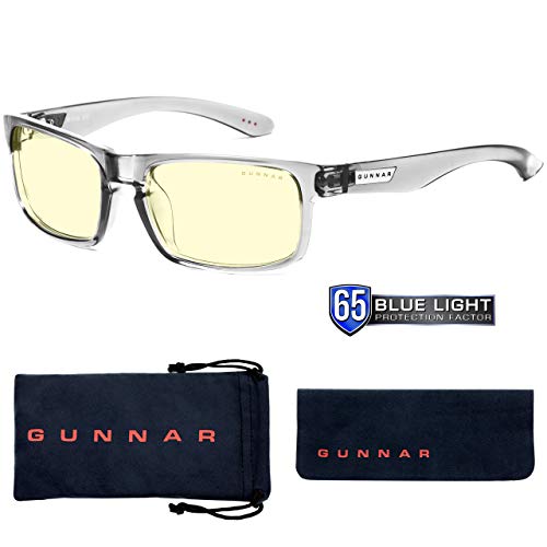 GUNNAR Gaming and Computer Glasses for Adults - Enigma, Smoke Frame, Amber Lens, Blocks 65% Blue Light