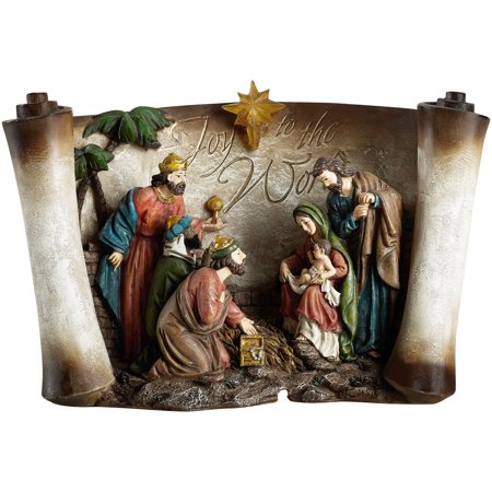Holiday Time LED Lighted Joy to the World Scroll Nativity Figurine
