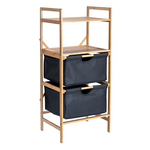 Household Essentials Bamboo Storage Shelf with Cotton Fabric Drawers, Natural and Black