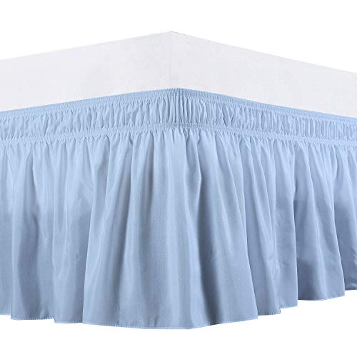 Premium Wrap Around Bed Skirt Elastic Dust Ruffle Three Fabric Sides Wrinkle, Dust and Fade Resistant Solid Luxurious Silky Fabric Provides Stylish Look to Your Bedroom [Light Blue, King - 18 ]