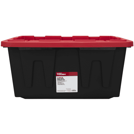 Hyper Tough 27 Gallon Large Storage Bin with Snap Lid, Black and Red, Heavy Duty Plastic Storage Container