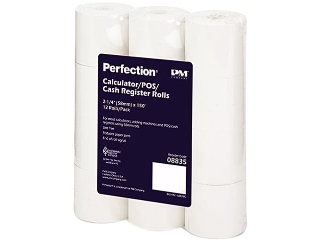 ICONEX, ICX90742202, 2-1/4"x150' Blended Bond Paper Roll, 12 / Pack, White