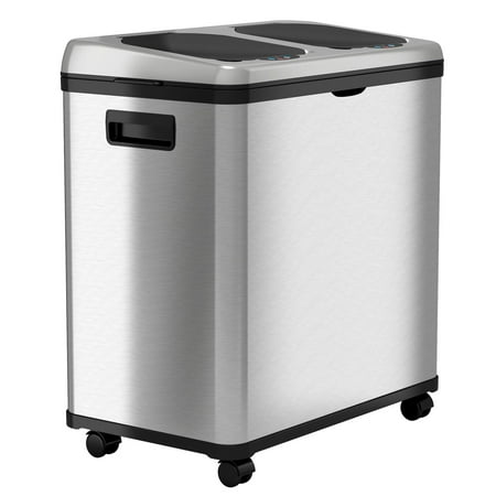 iTouchless Rolling Sensor Kitchen Trash Can and Recycle Bin with Wheels 16 Gallon Silver Stainless Steel
