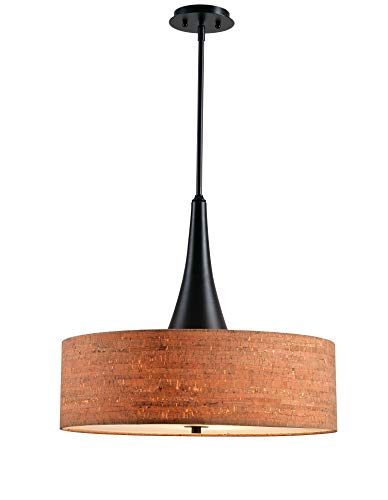 3-Light Bulletin Pendant Oil Rubbed Bronze - Kenroy Home: Cork Drum Shade, UL Listed, 22" Diameter