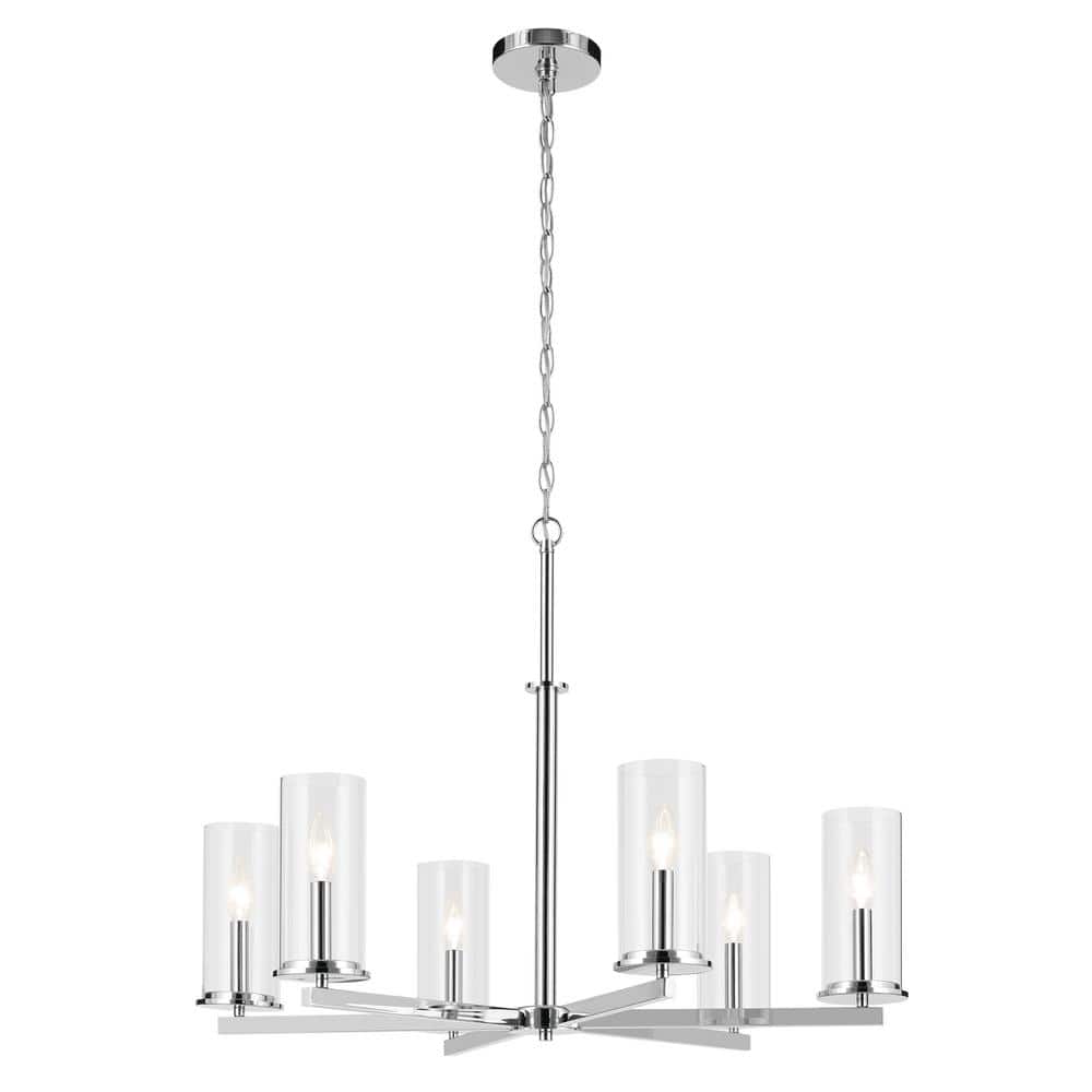 KICHLER Crosby 32.25 in. 6-Light Chrome Contemporary Candlestick Cylinder Chandelier for Dining Room
