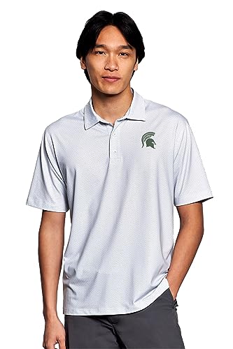 Vantage Apparel Men's Collegiate Premium Moisture Wicking Stretch Fit Diamond Print Polo, Michigan State Spartans, Gray, Medium