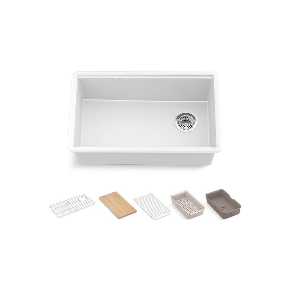KOHLER Billings Granite Composite 29 in. Undermount Single Bowl Workstation Kitchen Sink in Matte White