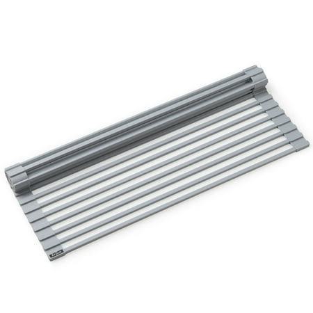 KRAUS Multipurpose Workstation Sink Roll-Up Dish Drying Rack in Light Grey