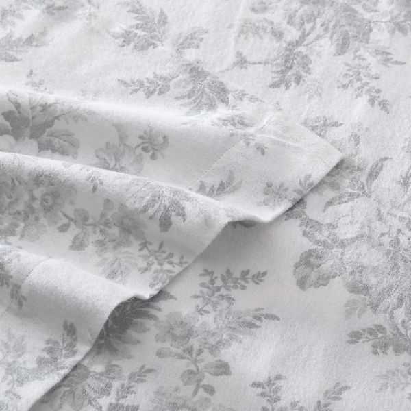 Laura Ashley Vanessa 4-Piece Grey Cotton Flannel Full Sheet Set