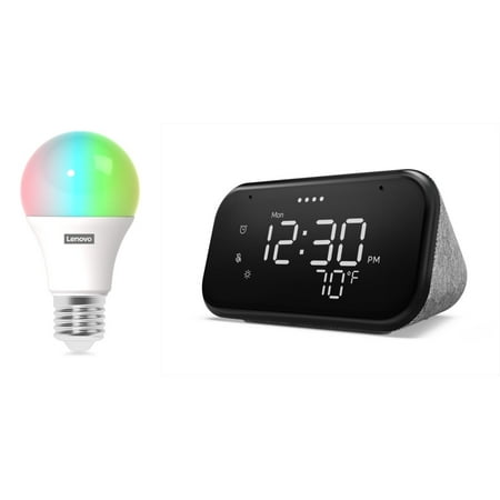 Lenovo Smart Clock Essential and Smart Color Bulb (Wi-Fi, A19, 800 Lumen - 60 Watt Equiv.)