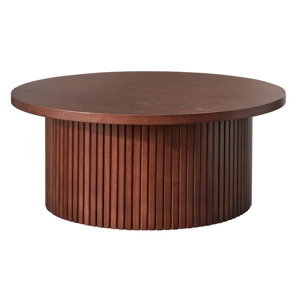 Lifestorey Kendrick 13" Low Profile Fluted Round Coffee Table Walnut
