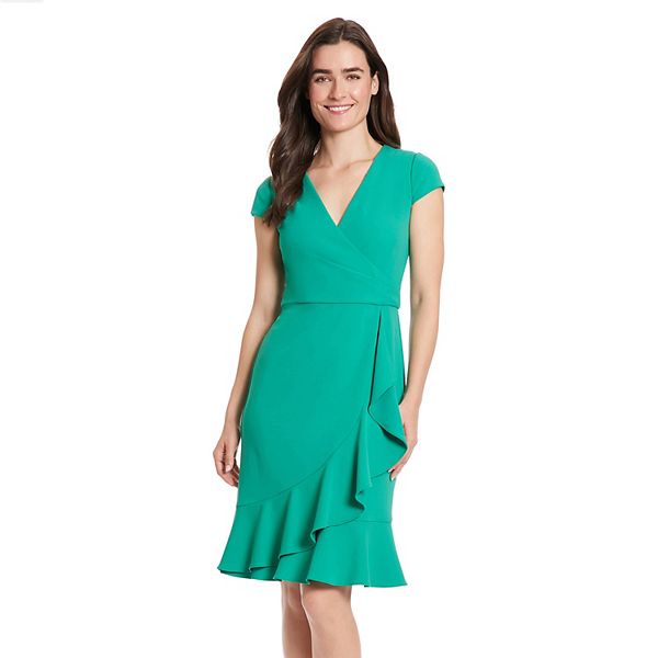 London Times Women's Dresses Feminine Ageless Surplice V-Neck Faux Wrap Ruffle Dress Office Event Shower Guest of, Viridis, 16