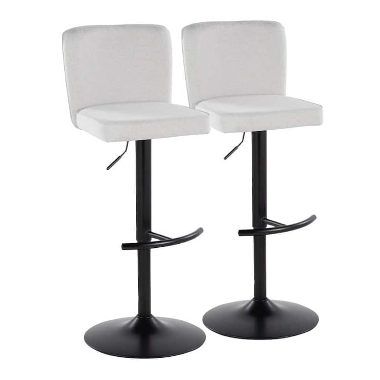 Lumisource Henry 34 in. White Fabric and Black Metal Adjustable Barstool (Set of 2)