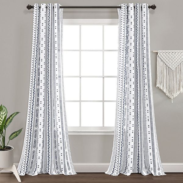 Lush Decor Hygge Stripe Light Filtering Window Curtain Panels Pair 52" W x 84" L Navy & White - Striped Curtains for Bedroom - Living Room Curtains