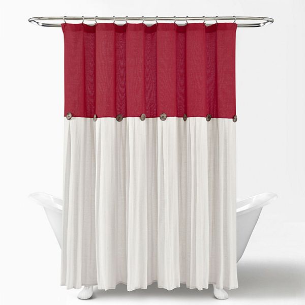 72"x72" Linen Button Single Shower Curtain Red/White - Lush Décor: Cotton Fabric, Machine Washable, Plain Weave