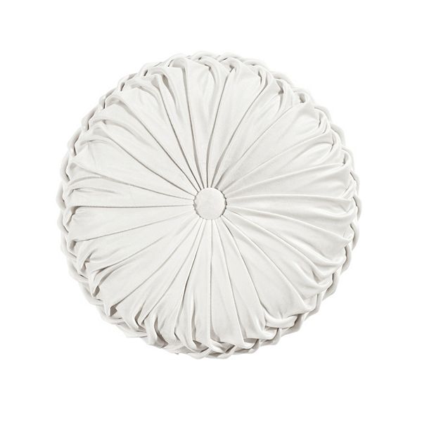 15" Pleated Round Throw Pillow White - Lush Décor: Luxurious Velvet, Indoor Accessory