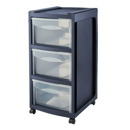 Mainstays Medium 3-Drawer Cart with Wheels, Blue Cove