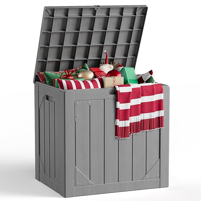MAKE CHANGES Outdoor Storage Box,30 Gallon Deck Box Outdoor Storage Bench Outside Waterproof Resin Storage Bench, Lockable Patio Cushions, Garden Tools Storage For Furniture, UV Resistant(Gray