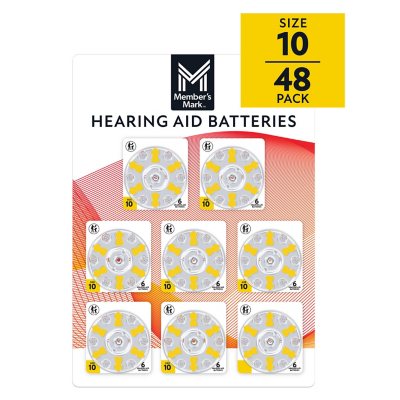 Members Mark Hearing Aid Batteries, Size 10, Yellow Tab, 48 ct.