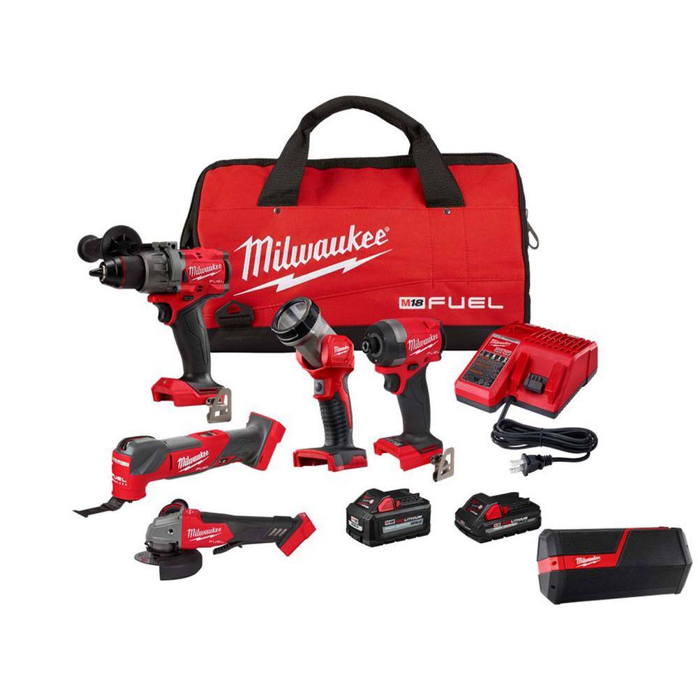 Milwaukee M18 FUEL 18-Volt Lithium-Ion Brushless Cordless Combo Kit (4-Tool) w/Grinder, Wireless Jobsite Speaker, & (2) Batteries
