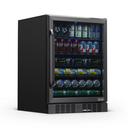 Newair 24" Built-in 177 Can Beverage Fridge in Black Stainless Steel with Precision Temperature Controls and Adjustable Shelves