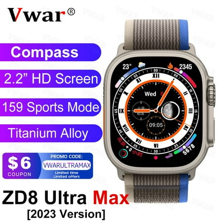 2023 VWAR ZD8 Ultra MAX Smart Watch Series 8 Compass 49mm Titanium Alloy Bluetooth Call NFC ECG IP68 Waterproof Smartwatch Men