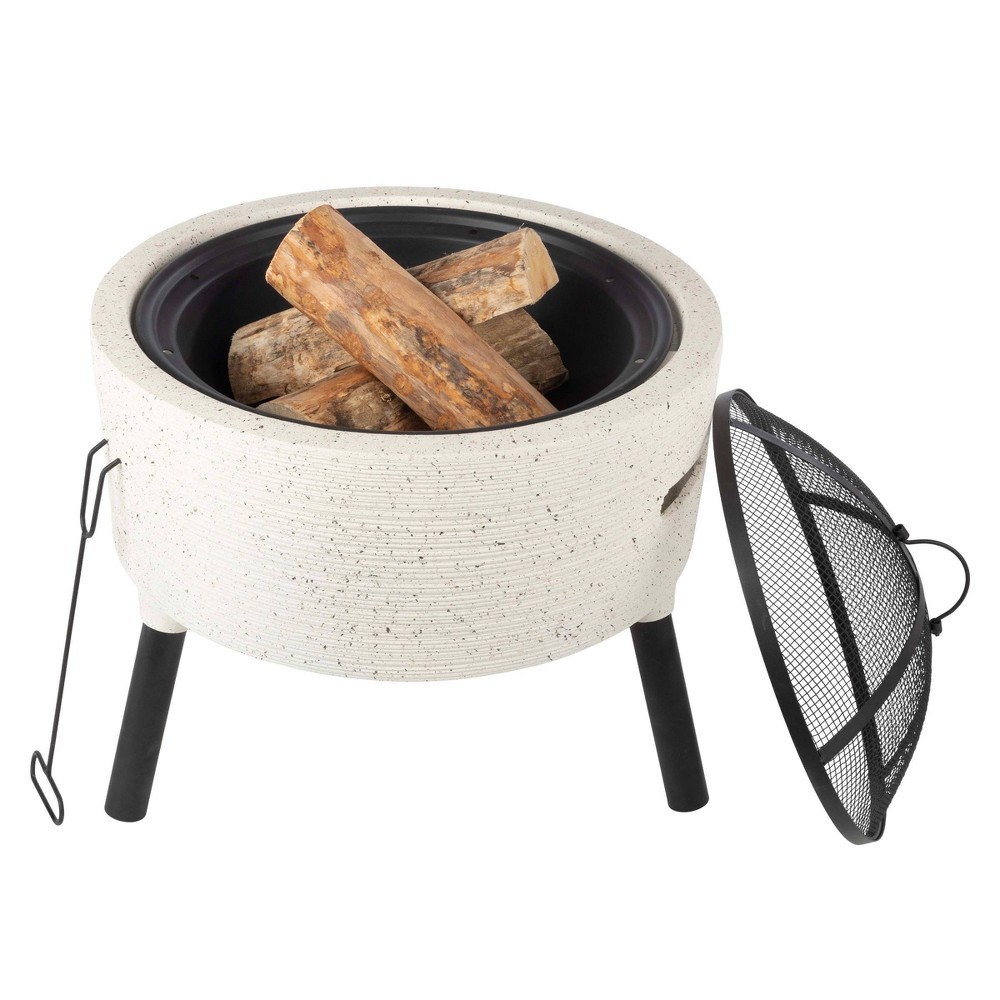 Pure Garden 21" Magnesium Oxide Round Outdoor Fire Pit Set Light Gray: Includes Poker & Cover, Easy Assembly