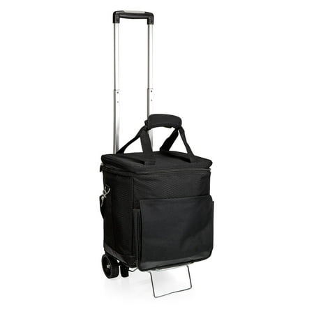 PICNIC TIME Cellar 6-Bottle Wine Carrier & Rolling Cooler Tote, Insulated Padded Wine Cooler Bag for Travel, Portable Bag with Polyester Exterior and Water-Resistant Base, (Black with Gray Accents)