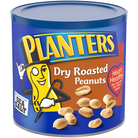 PLANTERS Salted Dry Roasted Peanuts, Party Snacks, Plant Based Protein, 52 Oz Canister
