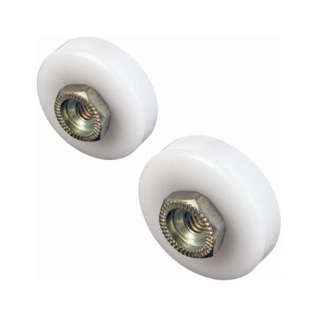 Prime-Line M 6202 Shower Door Roller, 7/8 in. and 3/4 in. Diam, Flat Edge Nylon Tires, Steel Ball Bearings, Threaded Hex Head Hub, Pack of 4