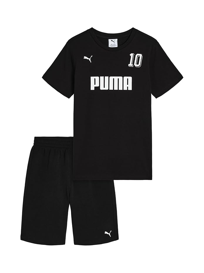 PUMA Boy's Short Sleeve T-Shirt & Short Set, Jet Black, L