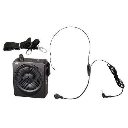 PYLE-PRO Portable PA Speaker Voice Amplifier - Built-in Rechargeable Battery w/ Headset Microphone Hands-free Waist-Band Strap & Aux 3.5mm Jack for External Audio Stream Devices - Pyle PWMA50B , Black