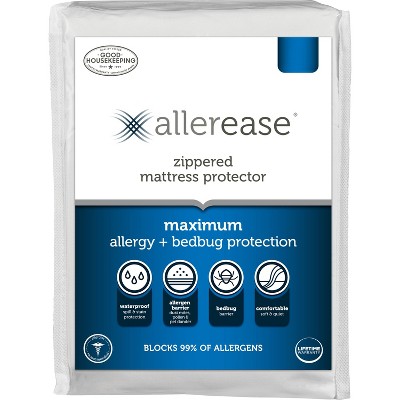 Allerease Queen Maximum Waterproof Allergy and Bedbug Protection Zippered Mattress Protector: Hypoallergenic, Twill Fabric, Fits 17" Depth