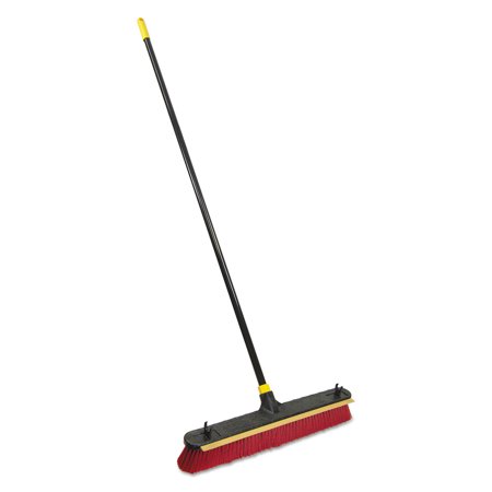 Quickie 2-in-1 Squeegee Pushbroom, 24" Brush, 60" Handle, PET/Steel, Red/Black/Yellow