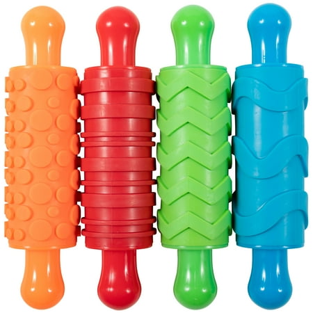 Ready 2 Learn Paint and Dough Texture Rollers - Set of 4 - Pattern Rolling Pins for Kids - Art Tools for Posters, Signs and Dough Creations, Multi