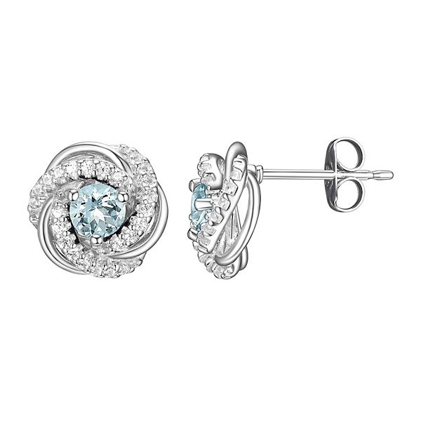 Tokens of Love Sterling Silver Lab-Created Aquamarine Birthstone Love Knot Stud Earrings - Sterling