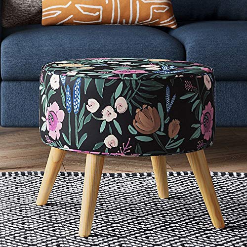 Riverplace Round Cone Leg Ottoman Black Floral - Project 62™