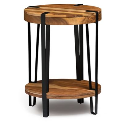 Alaterre Furniture 21" Ryegate Natural Brown Live Edge Solid Wood Round End Table Metal And Wood: Acacia Top, Fixed Shelf