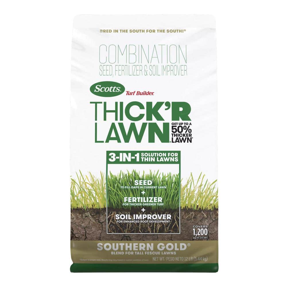 Scotts Turf Builder Thick'R Lawn Southern Gold Blend for Tall Fescue Lawns - Grass Seed, Grass Fertilizer, and Soil Improver, Covers 1,200 sq. ft.,12 lb.