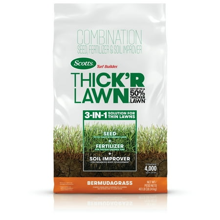 Scotts Turf Builder Thick'R Lawn Bermudagrass - 3-in-1 Lawn Thickener with Grass Seed, Fertilizer and Soil Improver, Repairs Thin Patchy Lawns, 4,000 sq. ft., 40 lb.
