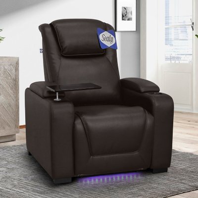 Sealy Tomlin Leather Power Home Theater Recliner, Chocolate