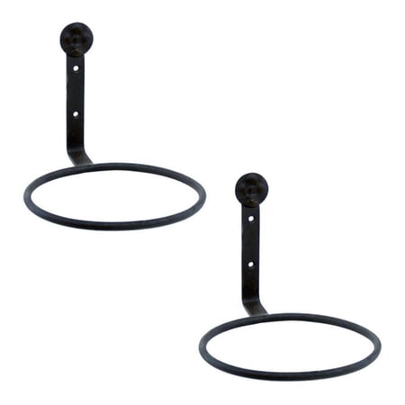 Set of 2 6" Wall Mounted Flower Pot Holder Ring Brackets Black - ACHLA Designs: Iron Planter Hangers for Indoor/Outdoor Use