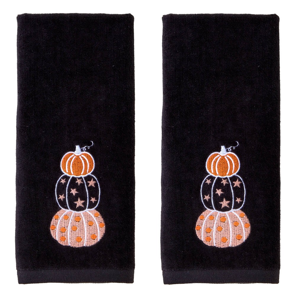 SKL Home Halloween Stacked Pumpkins 100% Cotton Embroidered 2pc Hand Towel Set, Decorative for Bath/Kitchen/Bar & Gift, Black